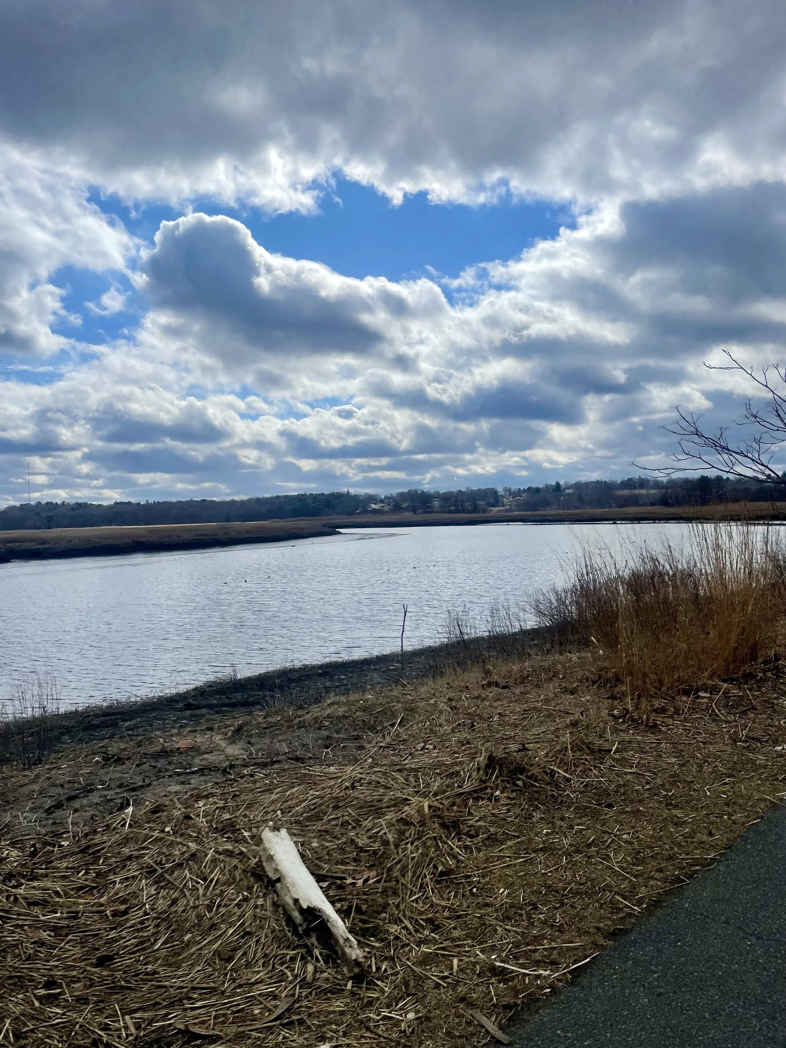 following the strong and winding neponset, a smooth path takes you to and from the marsh with tall flora where many birds flock